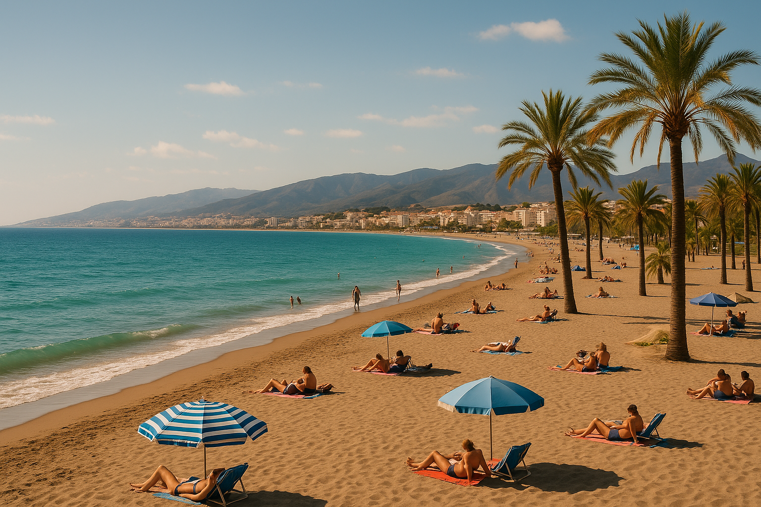 [Costa del Sol beach scene with golden sand and Mediterranean waters – AI Generated Image]